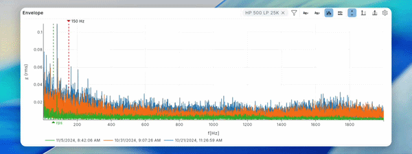 Preset and customizable envelope filters are now available for signal analysis. Applying these filters isolates specific frequency bands, improving the accuracy of fault detection.
