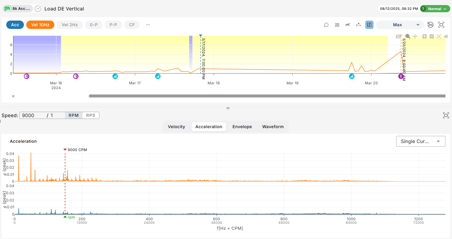 Modes aren’t static: even within a single mode, important shifts can occur over time, and MultiViz flags these changes with specific events that show exactly where in the frequency spectrum the shift is happening.
